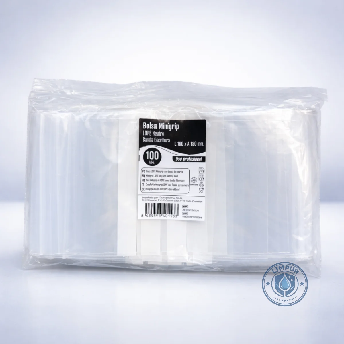 Fabricados em polietileno virgem com espessura de 50 microns, garantem total segurança no contacto com alimentos. O sistema de fecho zip assegura uma vedação eficaz, evitando fugas ou contaminações.