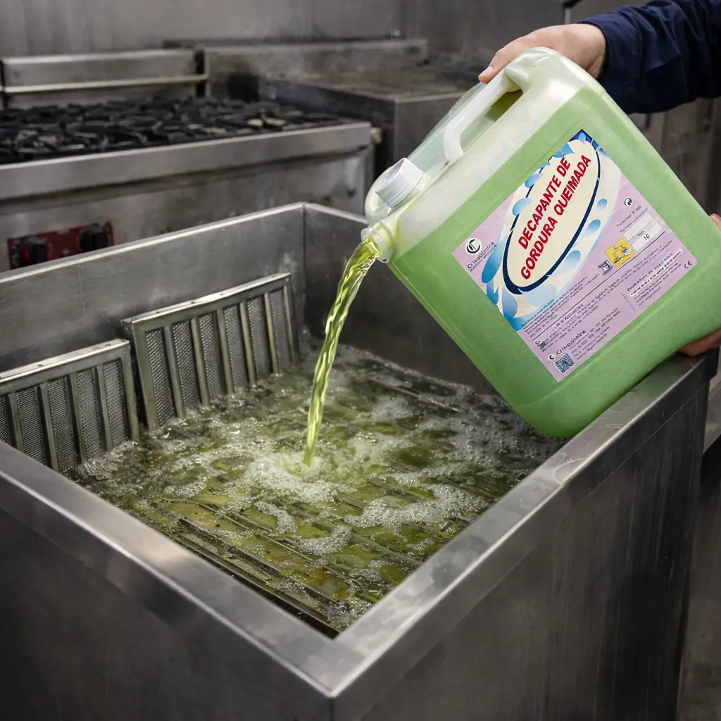 O Decapante de Gordura Queimada é um desengordurante profissional desenvolvido para a remoção eficaz de gorduras intensas e incrustadas, incluindo gordura queimada, em superfícies de inox.