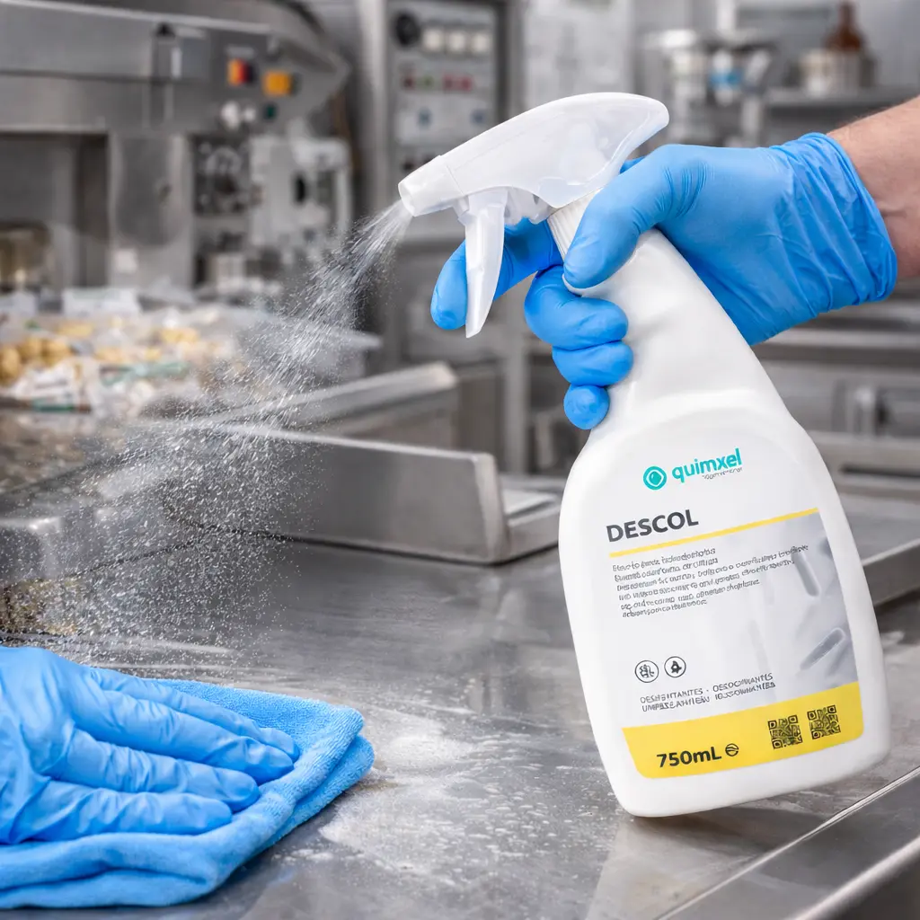 O Descol Desinfetante Hidroalcoólico é um desinfetante profissional à base de amónios quaternários em solução hidroalcoólica, desenvolvido para a desinfeção eficaz de superfícies, equipamentos e instalações na indústria alimentar e ambientes profissionais.