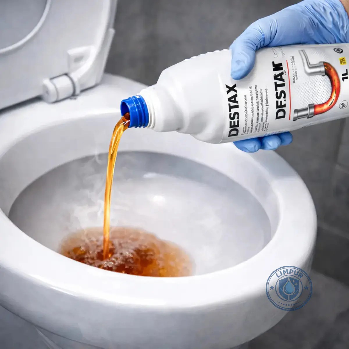 O Destax é um produto químico profissional de elevada potência, especialmente desenvolvido para dissolver resíduos orgânicos e inorgânicos acumulados em sistemas de esgoto, canalizações e tubagens.