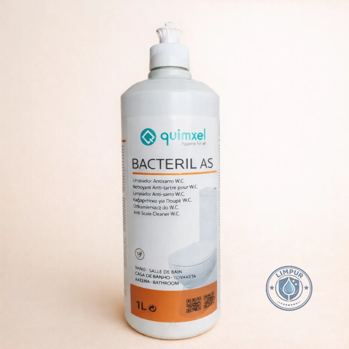 O Bacteril AS é um poderoso limpador desincrustante ácido especialmente desenvolvido para a limpeza profunda de inodoros, urinóis e casas de banho em geral. A sua fórmula à base de ácidos inorgânicos atua eficazmente na remoção de calcário, sarro, óxidos, incrustações minerais e resíduos metálicos, garantindo uma higienização completa e redução de odores.
