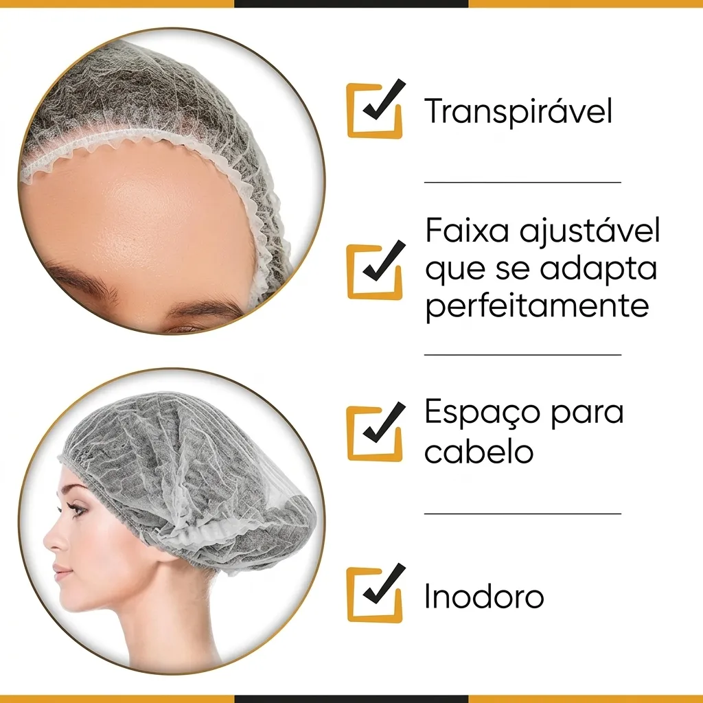 Produzidos com materiais de alta qualidade, estes gorros garantem durabilidade e resistência, mesmo em ambientes de uso intensivo. São uma escolha fiável para profissionais que valorizam higiene e desempenho.